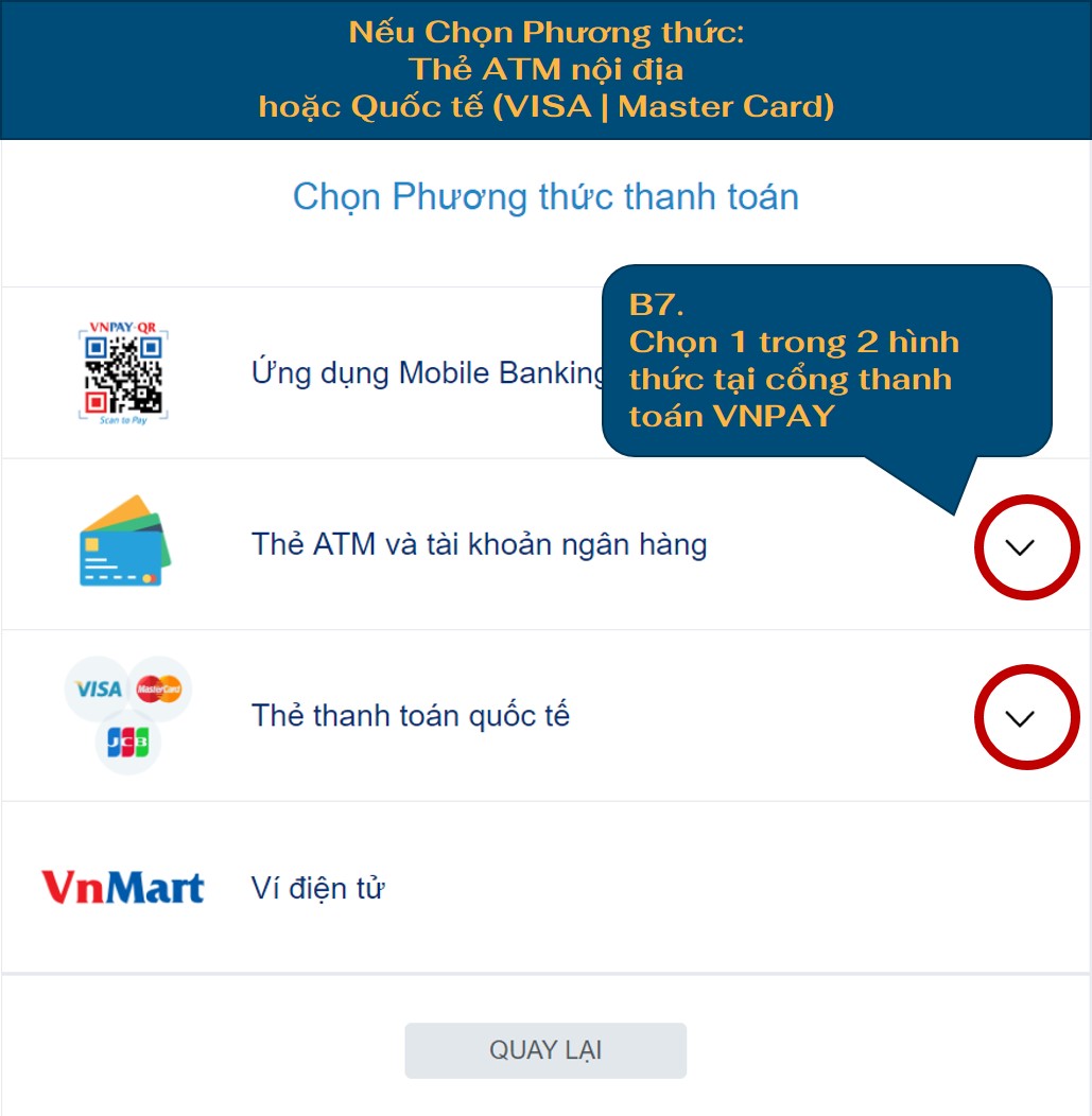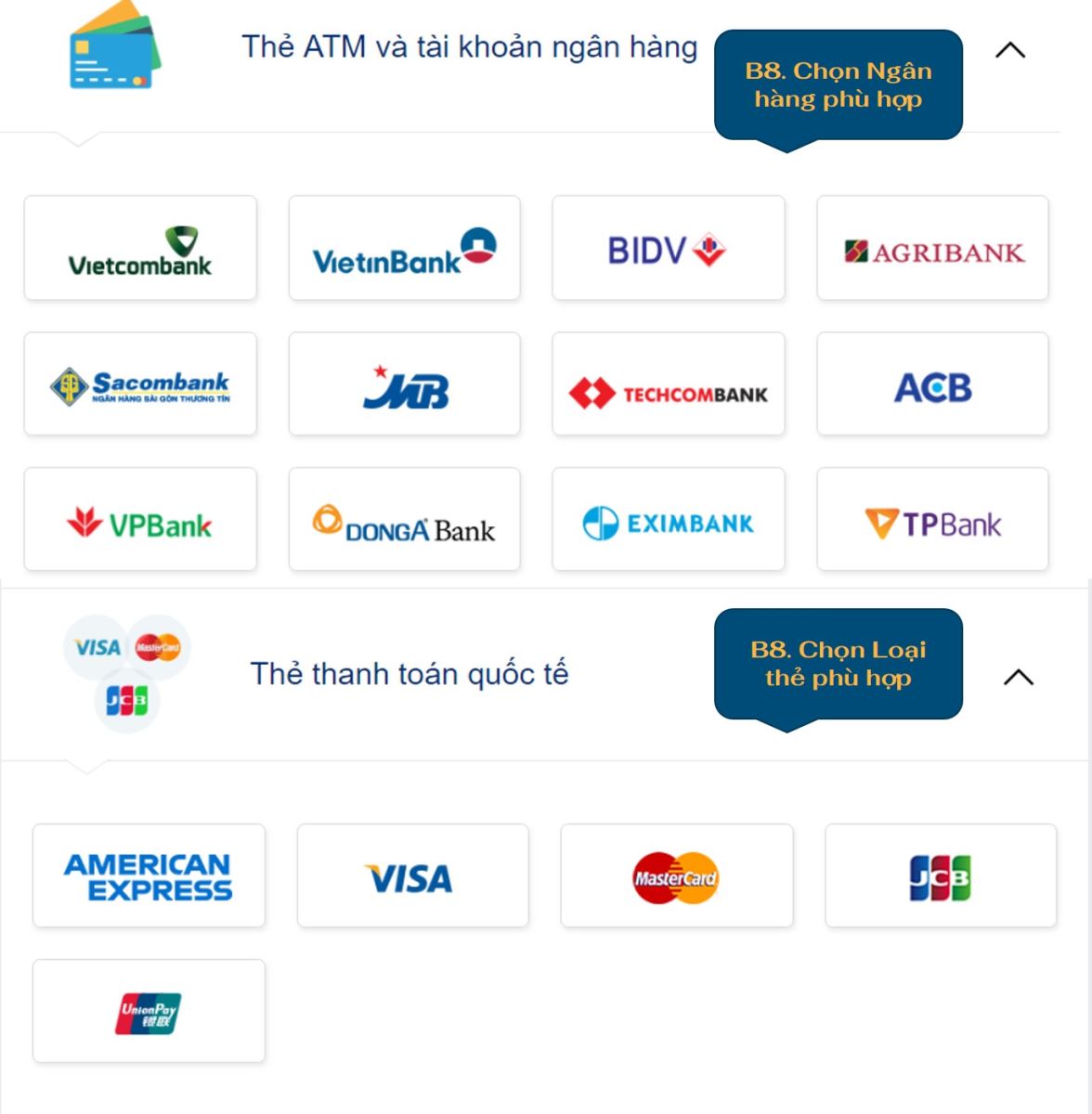 Bạn chọn tiếp tại cổng thanh toán: Thẻ nội địa hoặc Quốc tế