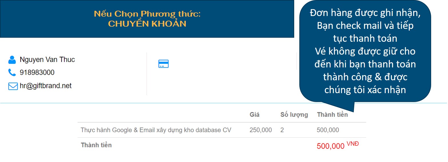 Lưu ý: Vé sẽ không được giữ chỗ cho đến khi bạn thanh toán thành công và được chúng tôi xác nhận.